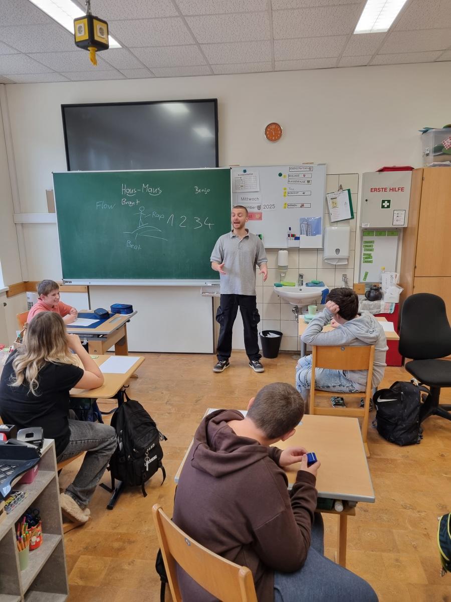 Die 6. Klasse hatte eine Workshop mit Benjo dem Rapper. Wir haben unsere eigenen Rhymes geformt, wir haben zur Musik gerappt und uns zusammen mit Benjo im Freestyle probiert. Was für ein toller Vormittag.