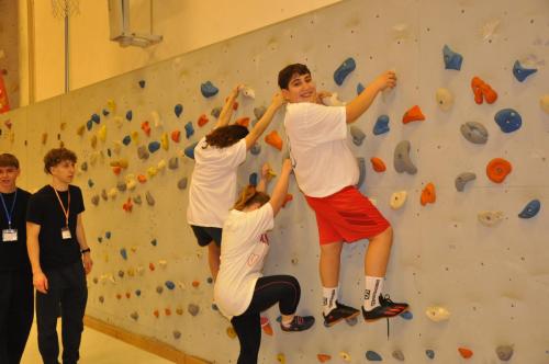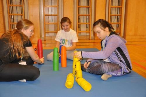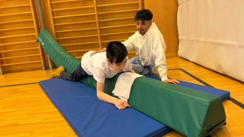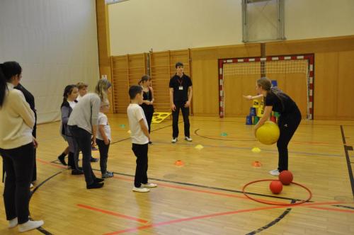 Am 28.01. fand der 1. Sportinklusionstag in Stockerau statt. Die Allgemeine Sonderschule Stockerau und das BG/BRG Stockerau kooperierten heuer in Form eines mehrteiligen Inklusionsprojektes. Die InitiatorInnen Clara Zabel und Fiora Gram, von Seiten der Sonderschule, so wie Daniela Silberbauer und Walter Kubicka vom Gymnasium Stockerau, starteten ein Projekt, um ein niederschwelliges Kennlernen zwischen SchülerInnen der ASO und SchülerInnen des Gymnasiums zu ermöglichen. Die SchülerInnen des Wahlpflichtfaches Sport bemalten im ersten Teil des Projekts gemeinsam mit den Kindern der ASO T-Shirts. Die GymnasiastInnen besuchten hierzu die ASO Stockerau. Es konnten bereits erste Barrieren und Unsicherheiten im Umgang mit Behinderungen abgebaut werden und alle hatten am Ende großen Spaß gemeinsam. Dank der finanziellen Unterstützung des Kiwanis Clubs Stockerau, konnte das Projekt ohne Mehrkosten für die Kinder umgesetzt werden. Im zweiten Teil des Projekts durften die SchülerInnen der ASO dann ins BG/BRG Stockerau kommen. Dort hatten die GymnasiastInnen selbstständig vielfältige Sportmöglichkeiten im Turnsaal geplant und umgesetzt. Sie leiteten die Kinder der ASO mit viel Geduld, Feingefühl und Freude an. Jedes Kind wurde in seinen Bedürfnissen wahrgenommen, verstanden und unterstützt. An diesem Tag konnte man eine Gruppe junger Erwachsener sehen, die über sich selbst hinausgewachsen ist und für die Gesellschaft mit inspirierendem Beispiel vorangegangen ist. Es war ein Vormittag des Spaßes, der Unterstützung und der Menschlichkeit, der beiden Seiten noch lange positiv in Erinnerung bleiben wird.