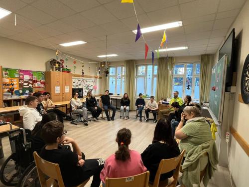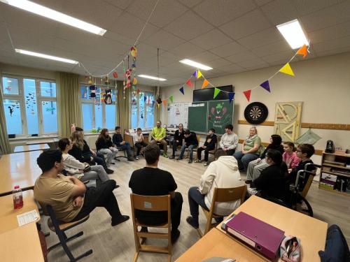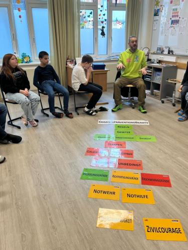 Ein Kriminalbeamter war bei uns in der Schule und es war ein sehr interessanter Vormittag. Kinder der 2, 6, und 8. Klasse zusammen haben viele Fragen stellen können und wir haben mit dem Polizisten über Rechte und Pflichten gesprochen. Was bedeutet es, wenn man 14 wird? Wie entstehen Regeln in der Gemeinschaft? Was passiert, wenn man sich nicht an diese hält?